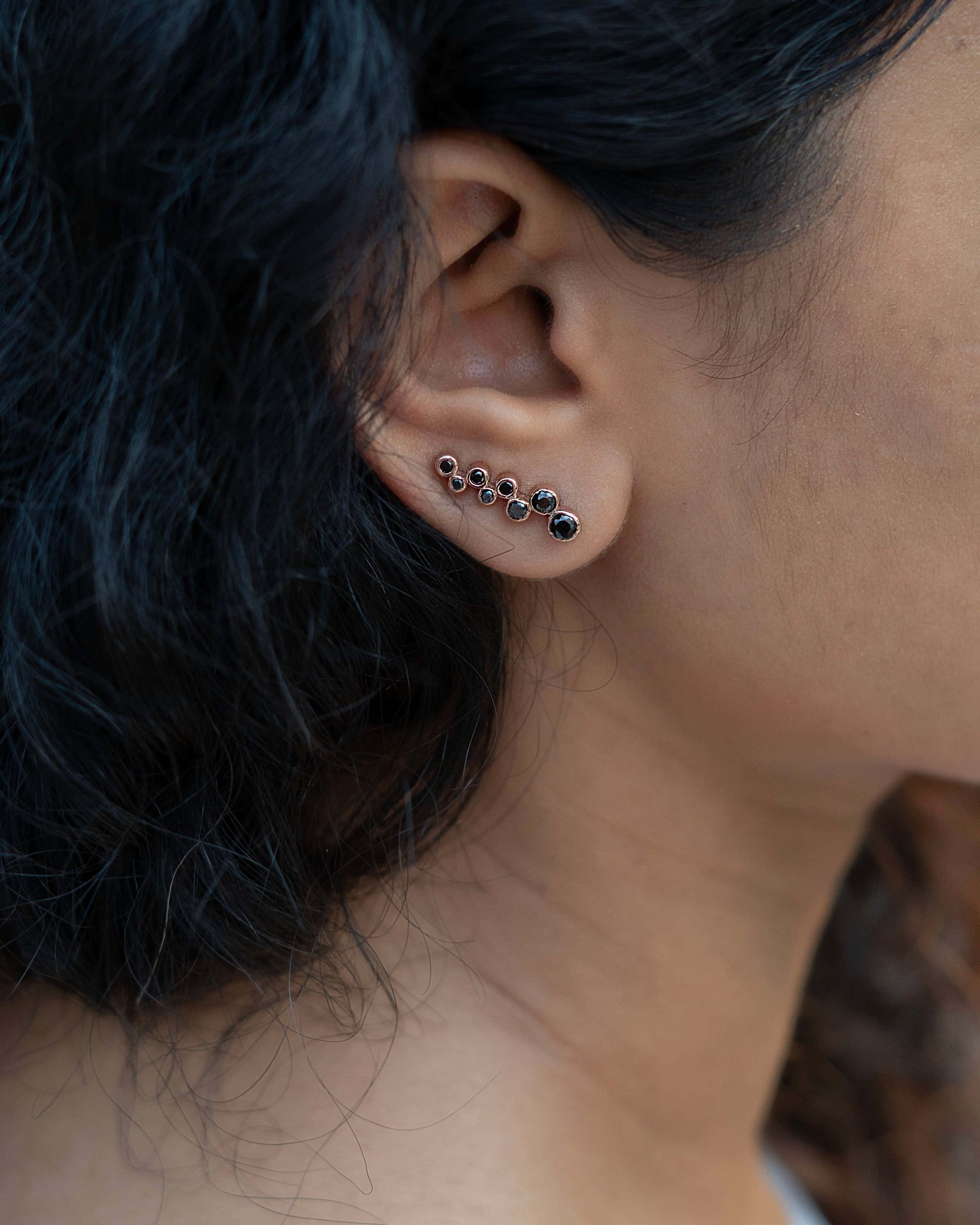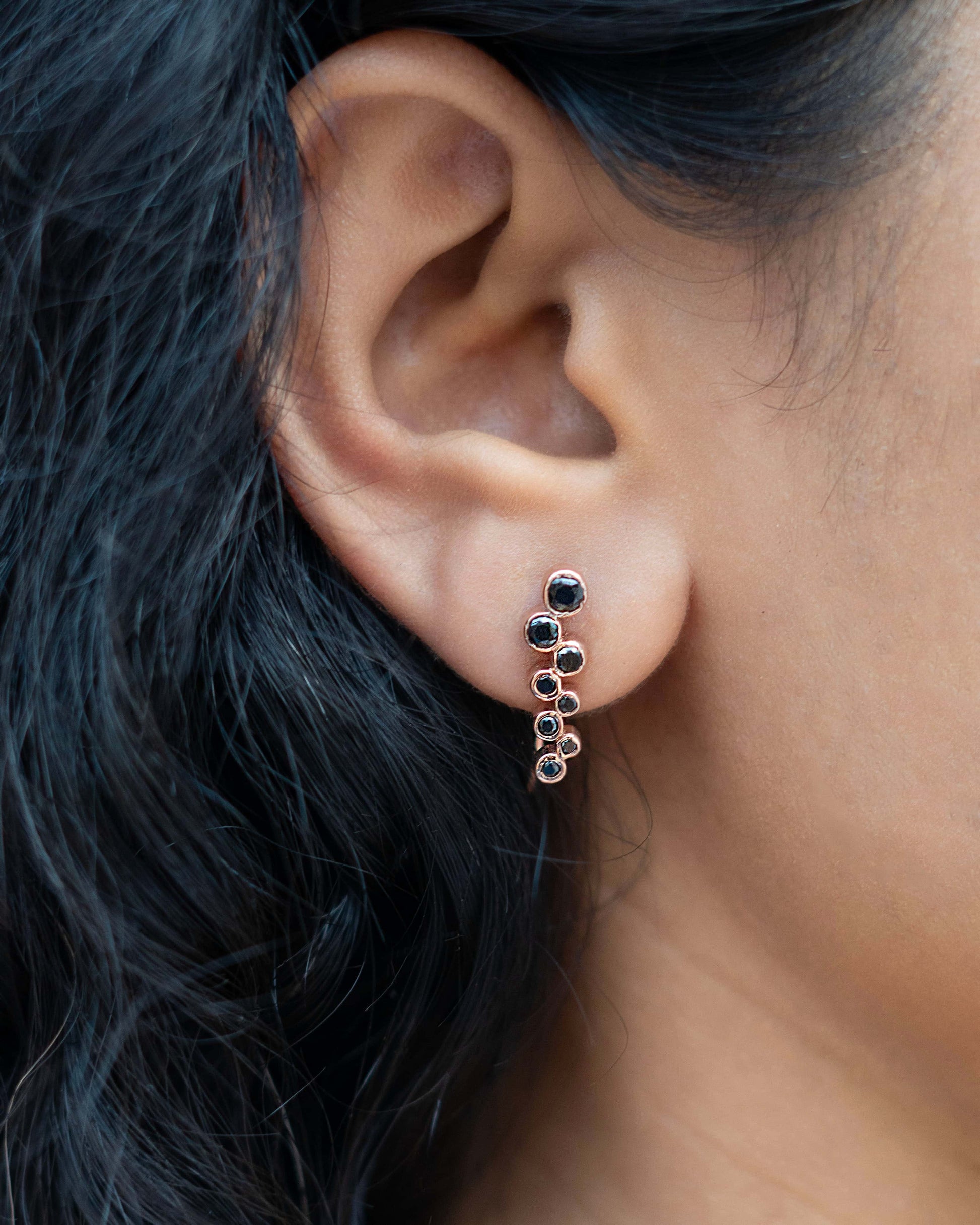 Crafted in 92.5% silver with a soft rose gold finish, it features a vertical trail of deep black CZ stones—each bezel-set to catch just the right glint of light.